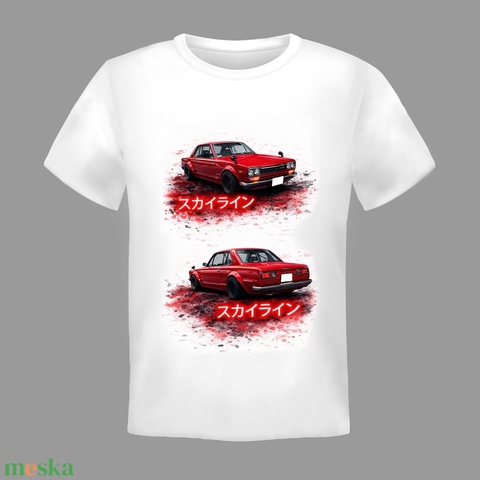 Egyedi nyomtatott tuningolt Első generációs Nissan skyline grafikus stílusban ábrázolva.