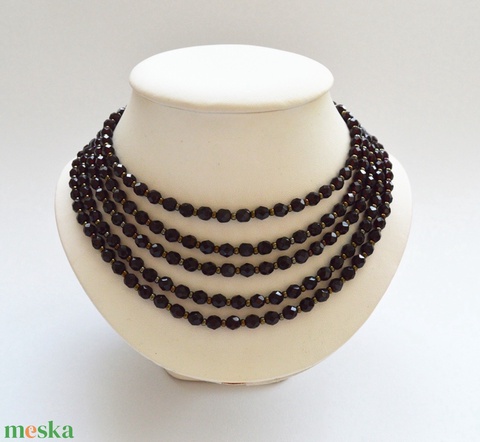 5 soros, feketébe hajló sötétbordó kaláris bronzzal - 6 mm-es csiszolt üveggyöngyből