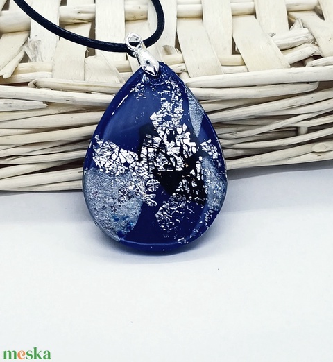 Kék-ezüst nyaklánc, sühető gyurma medál