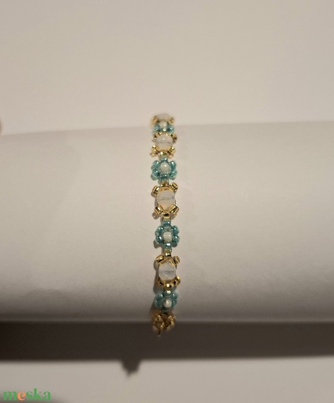 Gyöngyfűzött virág karkötő