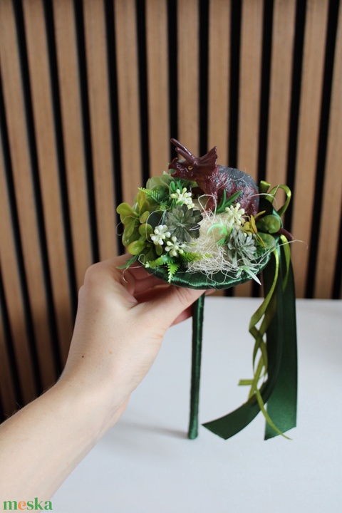 - Anyaga: hurkapálca, karton, dínófigura, szizál, műzöld, selyemvirág
