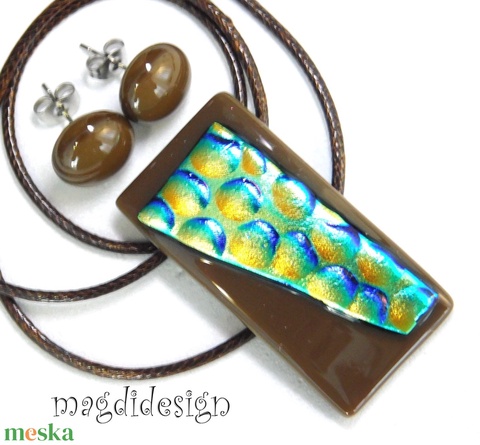 Arany-kék buborékok barnán dichroic üvegékszer szett pötty fülbevaló 1