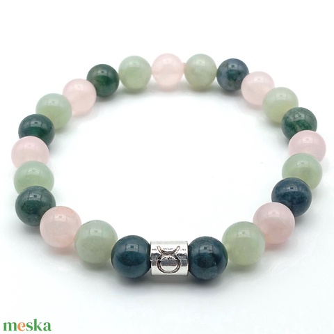 - Anyaga: rózsakvarc, jáde, mohaachát