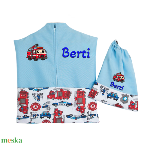 Ovis zsák + tornazsák szett névvel és jellel (kék + tűzoltós-rendőrös), ajándék szeretetküldővel