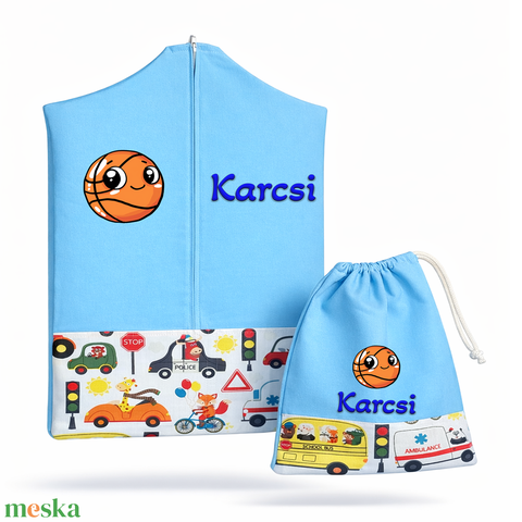 Ovis zsák + tornazsák szett névvel és jellel (kék + utazó állatok), ajándék szeretetküldővel