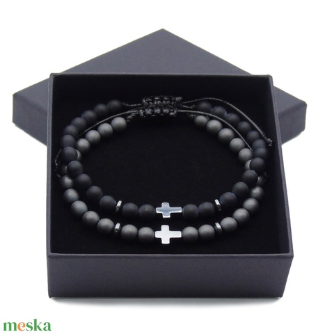 Díszdobozos férfi karkötő szett - hematit és matt ónix férfi karkötő pár