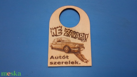 NE ZAVARJ! tábla. Wartburg 353 HH mintával. Vicces, humoros szöveggel, szerelési elfoglaltsággal. Veterán autós ajándék.