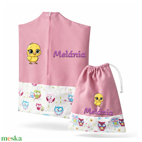 Ovis zsák + tornazsák szett névvel és jellel (rózsaszín + baglyos), ajándék szeretetküldővel