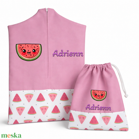 Ovis zsák + tornazsák szett névvel és jellel (rózsaszín + dinnyés), ajándék szeretetküldővel