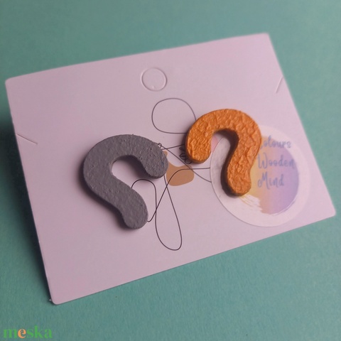 Sárga és szürke absztrakt fa fülbevaló
