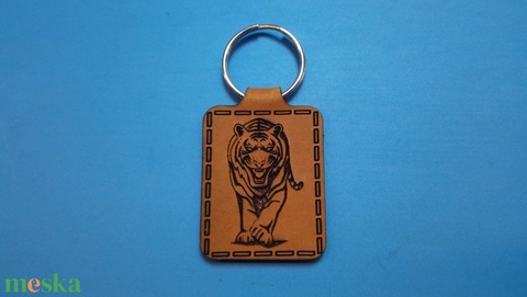 Tigris kulcstartó. Tigrises, nagymacskás mintával készült vadállatos kulcsdisz. Tigrissel mintázott bőr kulcs jelölő.