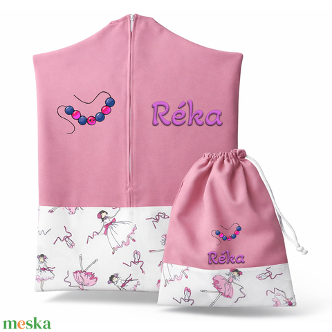 Ovis zsák + tornazsák szett névvel és jellel (rózsaszín + karcsú balerinás), ajándék szeretetküldővel