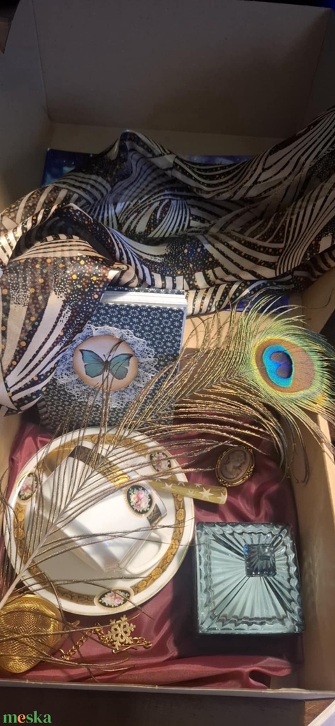 - Anyaga: porcelán, selyem, karton, textil, csipke