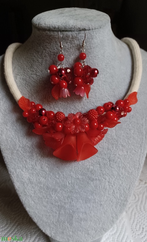 - Anyaga: akril virágok, akril gyöngy, pamutzsinór, delfinkapocs