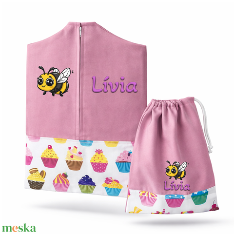 Ovis zsák + tornazsák szett névvel és jellel (rózsaszín + muffinos), ajándék szeretetküldővel