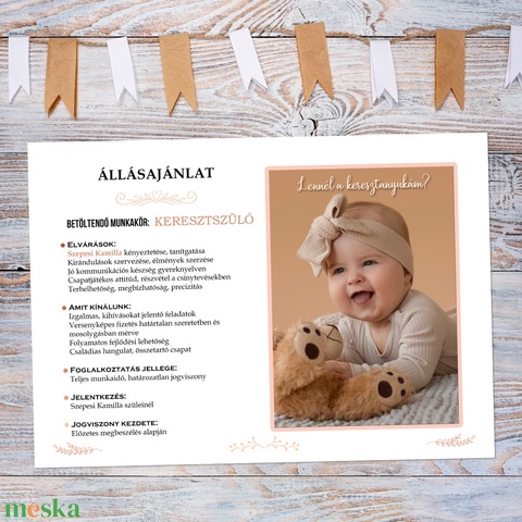Keresztszülő felkérő grafika, kedves állásajánlat (digitálisan vagy fotópapíron, keretezve) keresztanyának,keresztapának