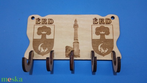 Fali kulcstartó, Érd városának minarett és címer mintájával.