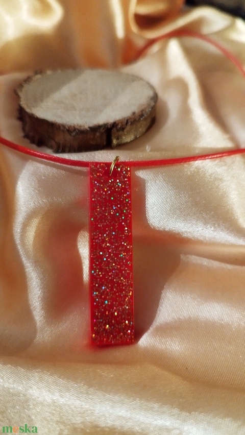 ékszer, nyaklánc, medál, női, piros, csillogó