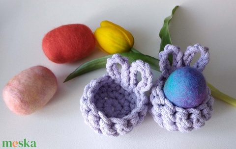 2 db-os horgolt, húsvéti nyuszifüles tojástartó szett orgona lila