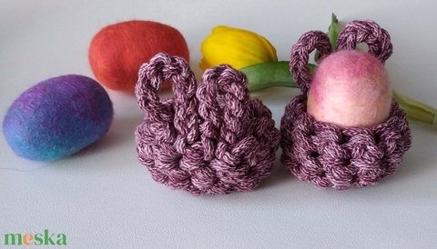2 db-os horgolt, húsvéti nyuszifüles tojástartó szett berry mix