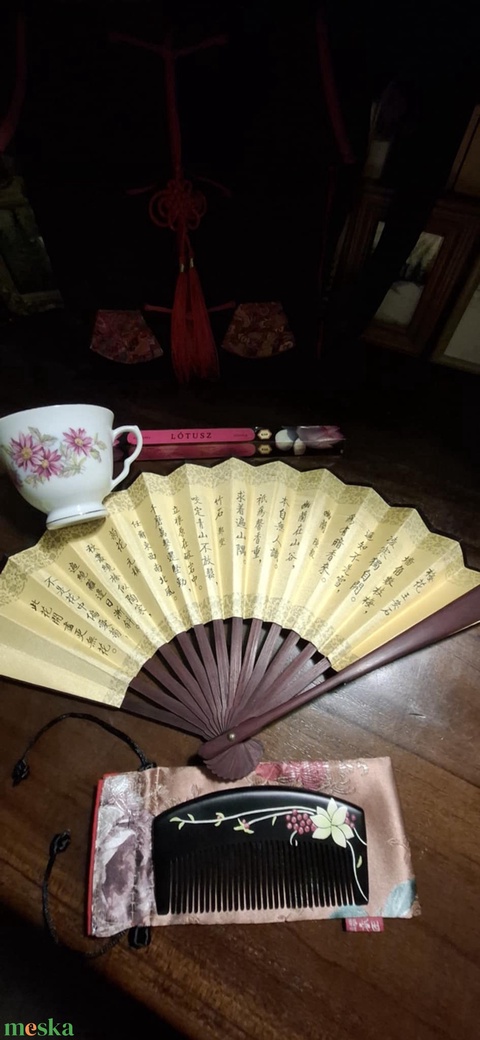 A gyönyörűen ápolt hajért kínai ébenfa autentikus fésűs, legyezős ajándékdoboz