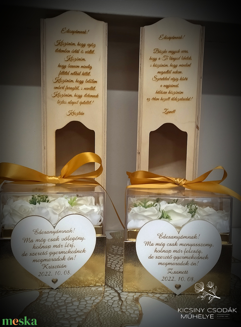 Személyre szóló virágbox és bortartó köszöntő ajándék