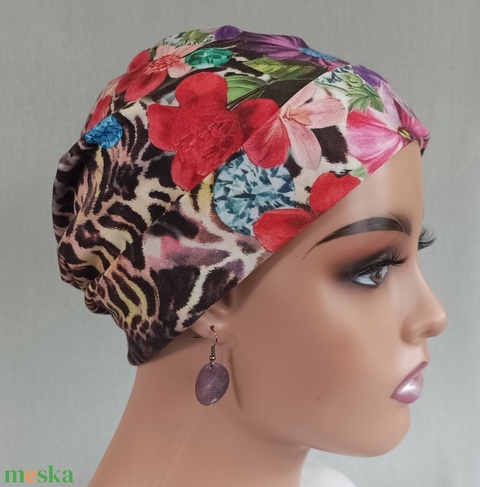 Sapka - Kemoterápiás sapka -, virágos-párducmintás -, daganatos kezelések idejére is