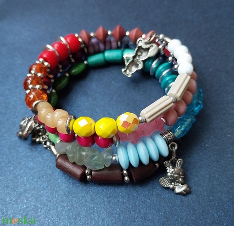 - Anyaga: üveggyöngyök, fagyöngyök, műanyag gyöngyök, féldrágakövek, memóriadrót