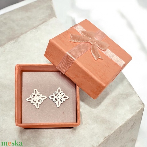 Ezüst színű nemesacél kelta csomó szimbólum fülbevaló ajándékdobozzal 5714615