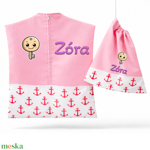 Ovis zsák + tornazsák szett névvel és jellel (rózsaszín + piros horgonyos), ajándék szeretetküldővel