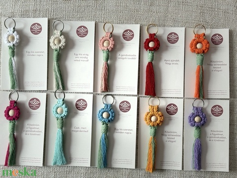 „Virágzó Kedvesség” – Makramé virág kulcstartó / táskadísz többféle színben CSOMAGOLVA!