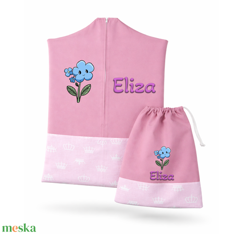 Ovis zsák + tornazsák szett névvel és jellel (rózsaszín + rózsaszín alapon fehér koronás), ajándék szeretetküldővel