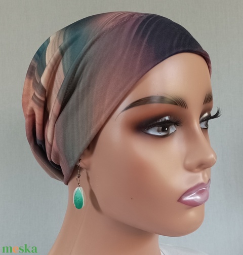 Sapka - Kemoterápiás sapka -, sötétzöld-bézs mintás -, daganatos kezelések idejére is