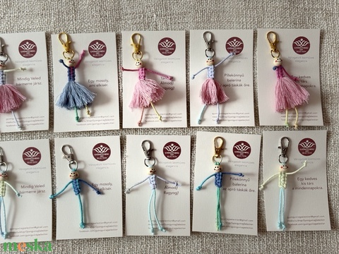 „Pillekönnyű Balerinák” – Kézzel csomózott kulcstartók és táskadíszek CSOMAGOLVA!