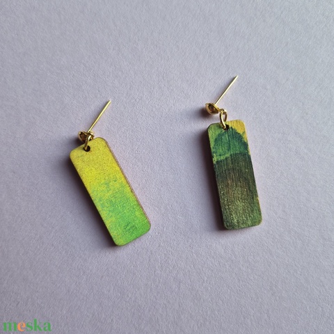Zöld-sárga lógós aszimmetrikus fa fülbevaló