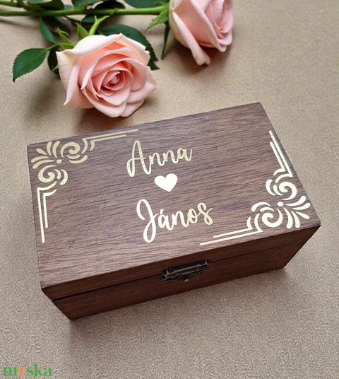 Esküvői pénzátadó doboz, nászajándék - sötét dió, arany tükörfólia