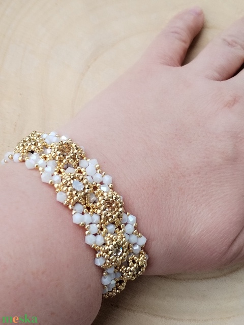 - Anyaga: bicone gyöngy, chaton, kristály, 2 mm-es csiszolt gyöngy, japán kásagyöngy, mágnese csúszókapocs