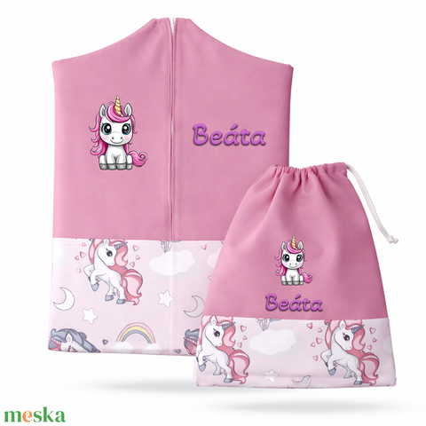 Ovis zsák + tornazsák szett névvel és jellel (rózsaszín + rózsaszín sörényű unikornisos), ajándék szeretetküldővel