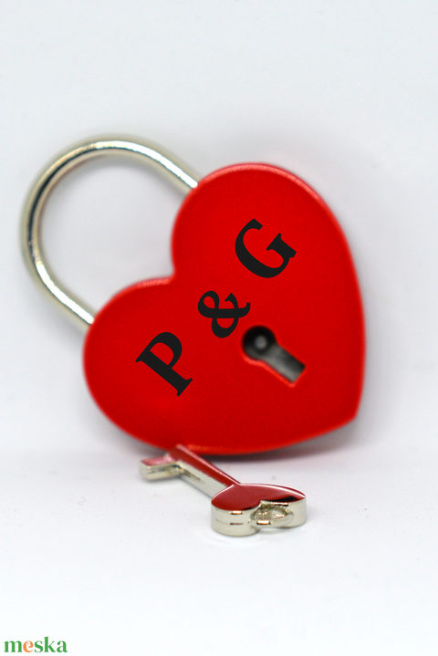 Személyre szabható szív alakú szerelem lakat kulccsal – piros lakat monogrammal, romantikus ajándék pároknak