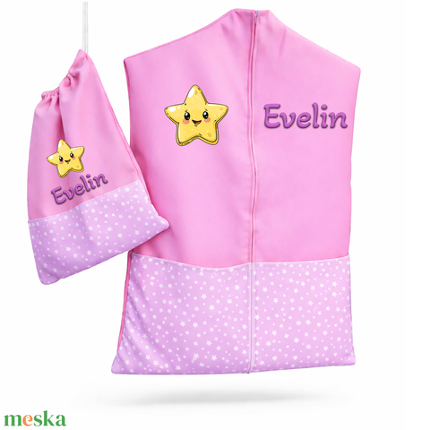 Ovis zsák + tornazsák szett névvel és jellel (rózsaszín + csillagos), ajándék szeretetküldővel