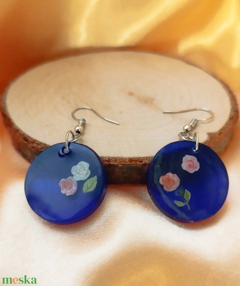 Kék színű kör alakú női fülbevaló és medál