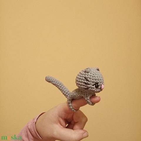 Horgolt szürke cica ujjbáb