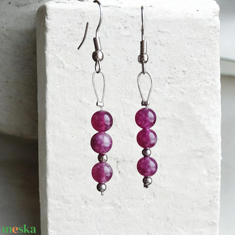 Fülbevaló lila ásvány és ezüst gyöngy