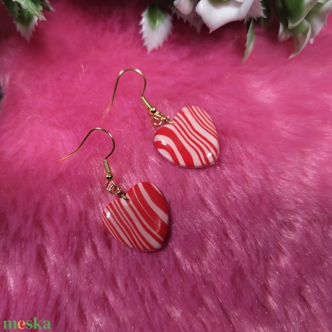 Szívecskés polyclay fülbevaló – csíkos