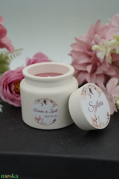 Szójaviasz illatgyertya kerámiakaspóban fedéllel, köszönőajándéknak is