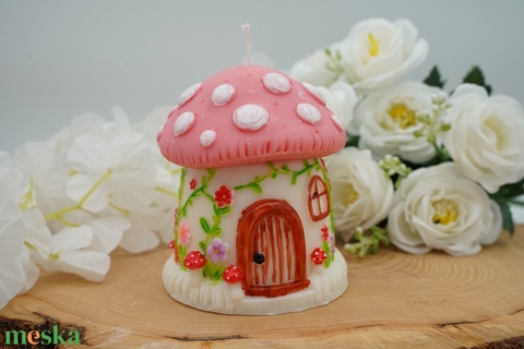 Mesebeli, virágos, tavaszi gombaház szójaviasz illatgyertya