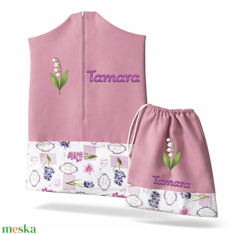 Ovis zsák + tornazsák szett névvel és jellel (rózsaszín + tavaszi virágos), ajándék szeretetküldővel