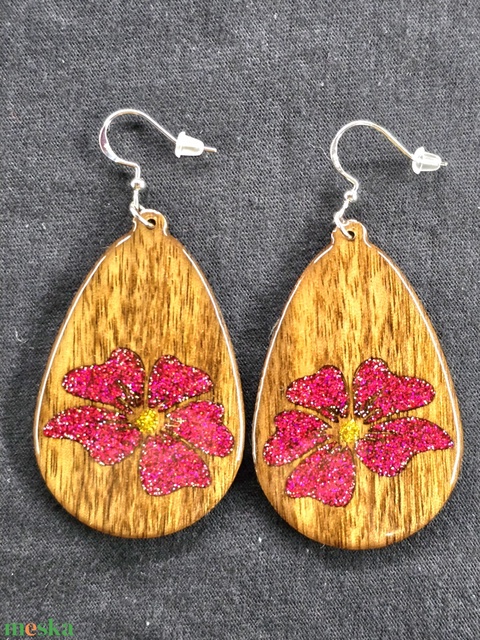 „Bordó Virág” – csillámos virágos fa fülbevaló