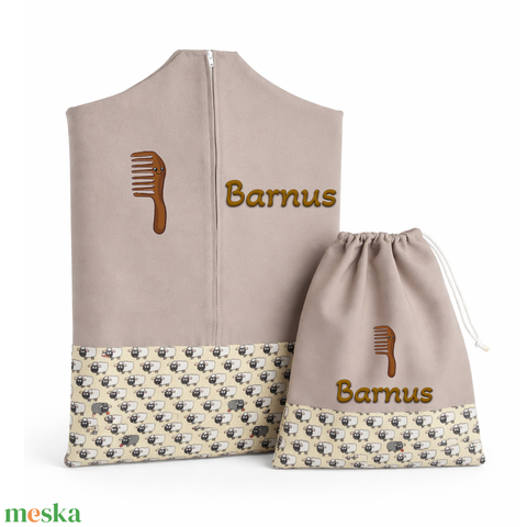 Ovis zsák + tornazsák szett névvel és jellel (drapp + bárányos), ajándék szeretetküldővel