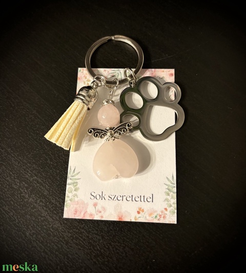 Rózsakvarc Ásvány Angyalkás Kulcstartó
